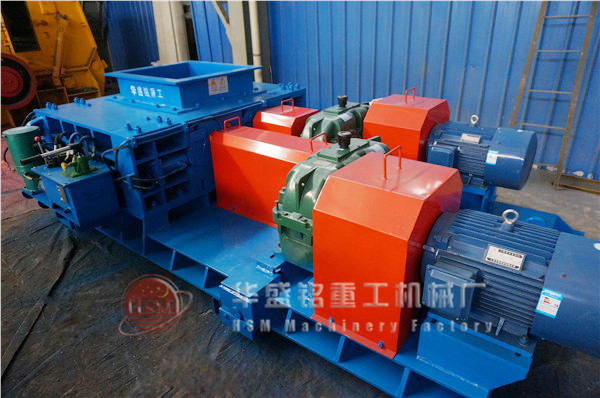 強(qiáng)力分級(jí)齒輥破碎機(jī)當(dāng)物料落入分級(jí)破碎機(jī)雙輥之間時(shí),帶有螺旋齒牙或刀形齒板首先將物料篩分,小于排料粒度的顆粒直接通過(guò)而不需要破碎,進(jìn)入排料溜槽,在垂直應(yīng)力或剪切力的共同作用下,大塊物料受齒輥齒牙的劈裂、剪切,拉伸被破碎,從排料口排出。